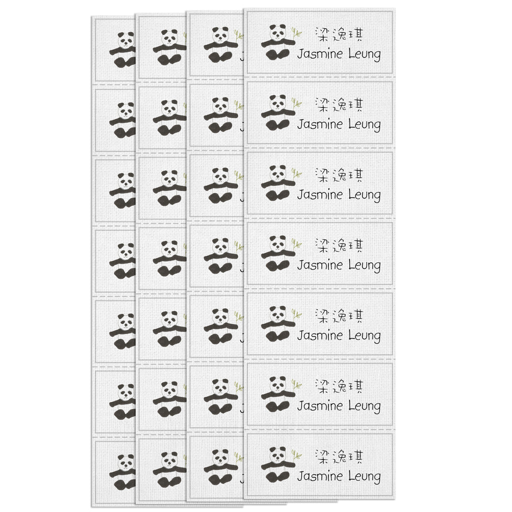 Panda with white background fabric iron-on name labels