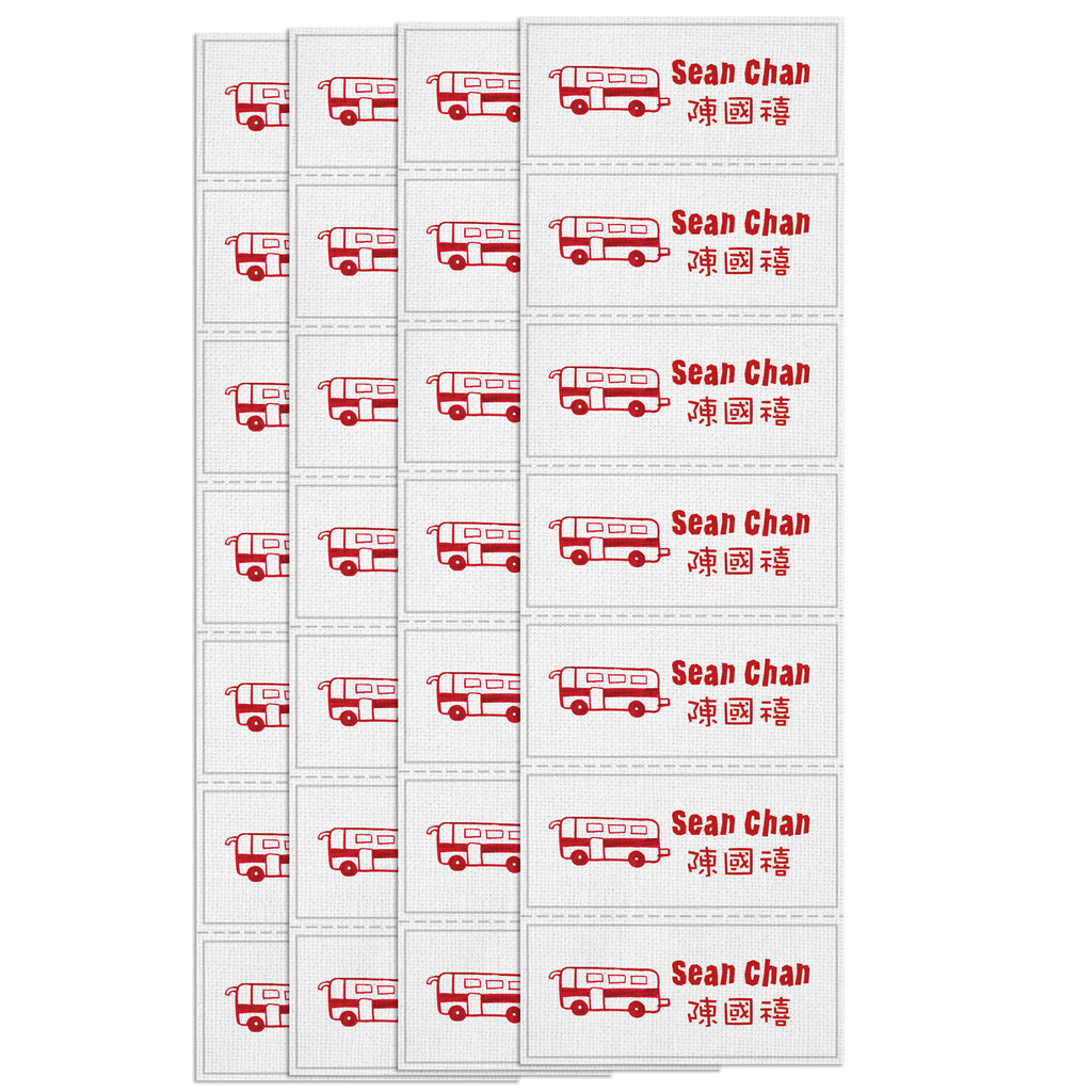 Red bus fabric iron-on name labels