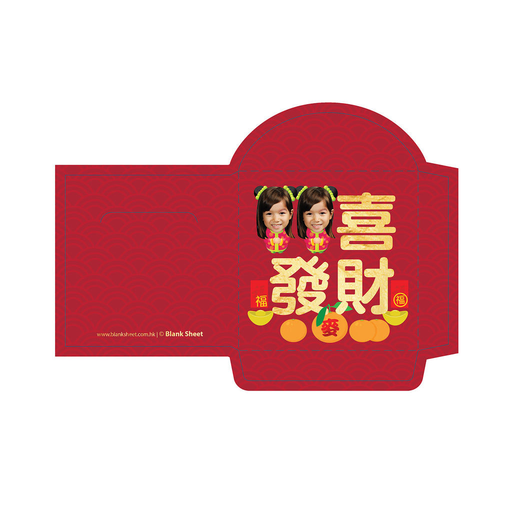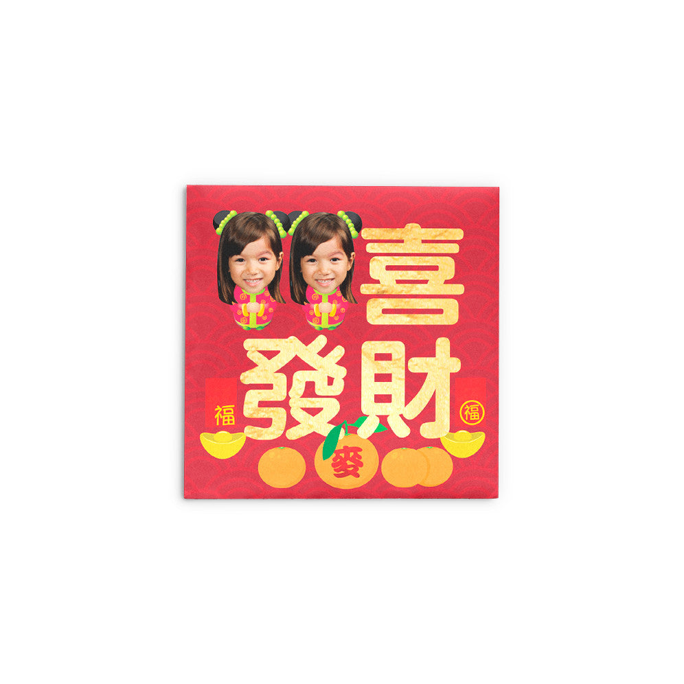 恭喜發財利是封(兩個女孩)Kung Hei Fat Choi Red Packets (2 Girls) 3.5"x3.5"