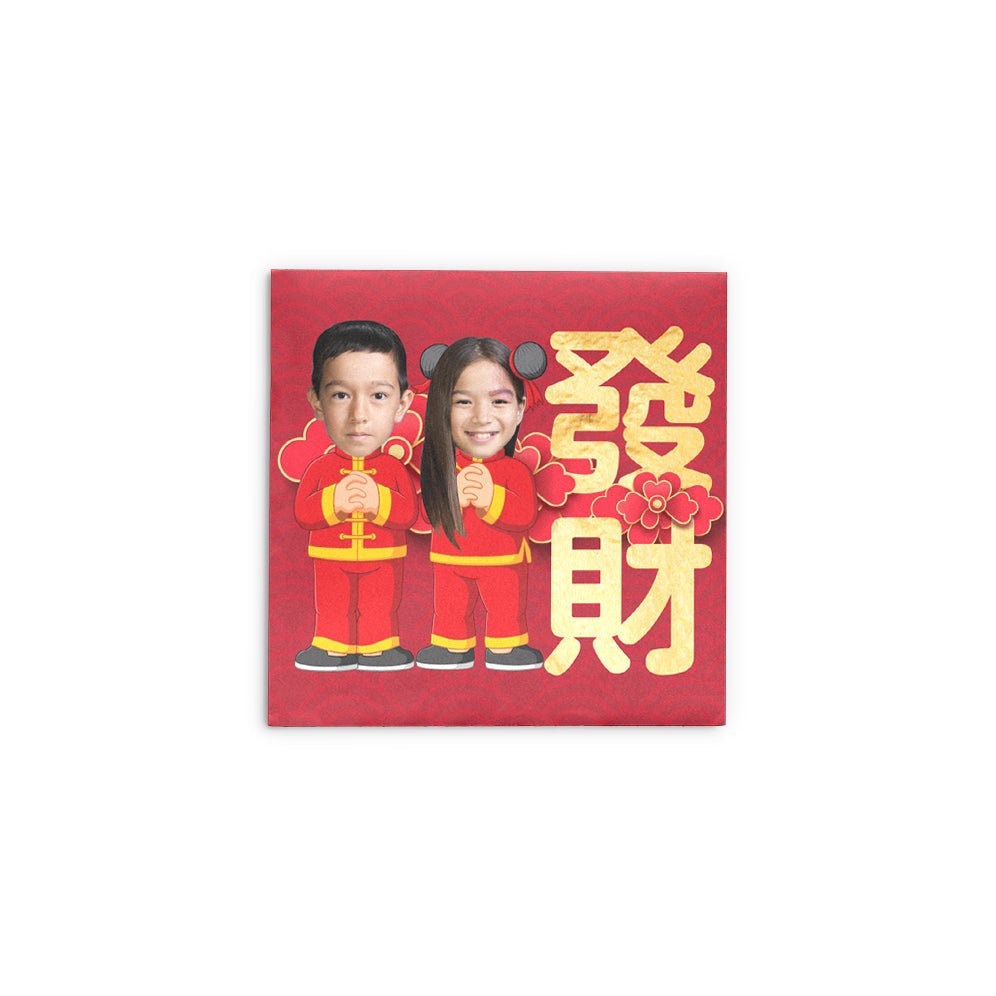 經典恭喜發財利是封(兩個小孩) Old School Kung Hei Fat Choi Red Packets(2 kids) 3.5"x3.5"