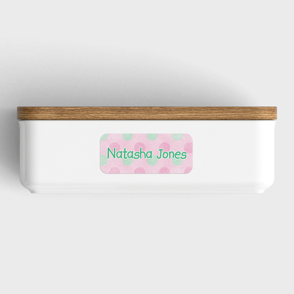 Cotton candy polka waterproof name labels